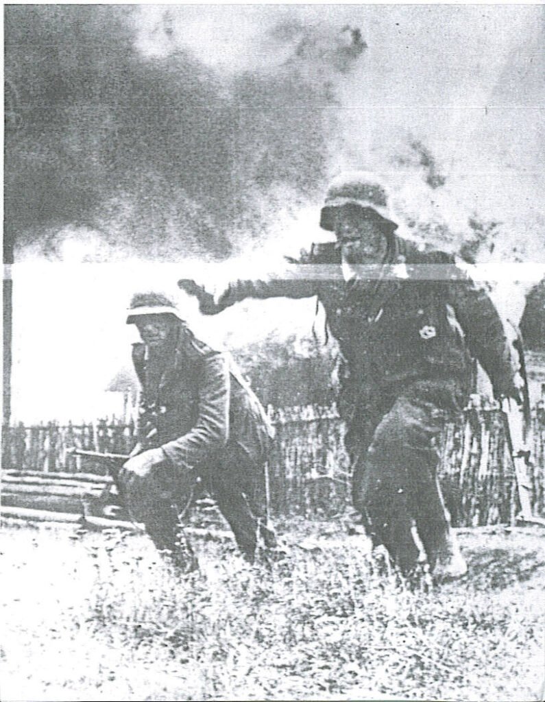 In deel Oorlog dansen 4 nazi’s in zwarte uniformen tegen 4 geallieerden in groene uniformen op het podium en op de achtergrond vind je zwart wit foto’s van de Tweede Wereldoorlog. Hier een paar foto’s van beide kampen.